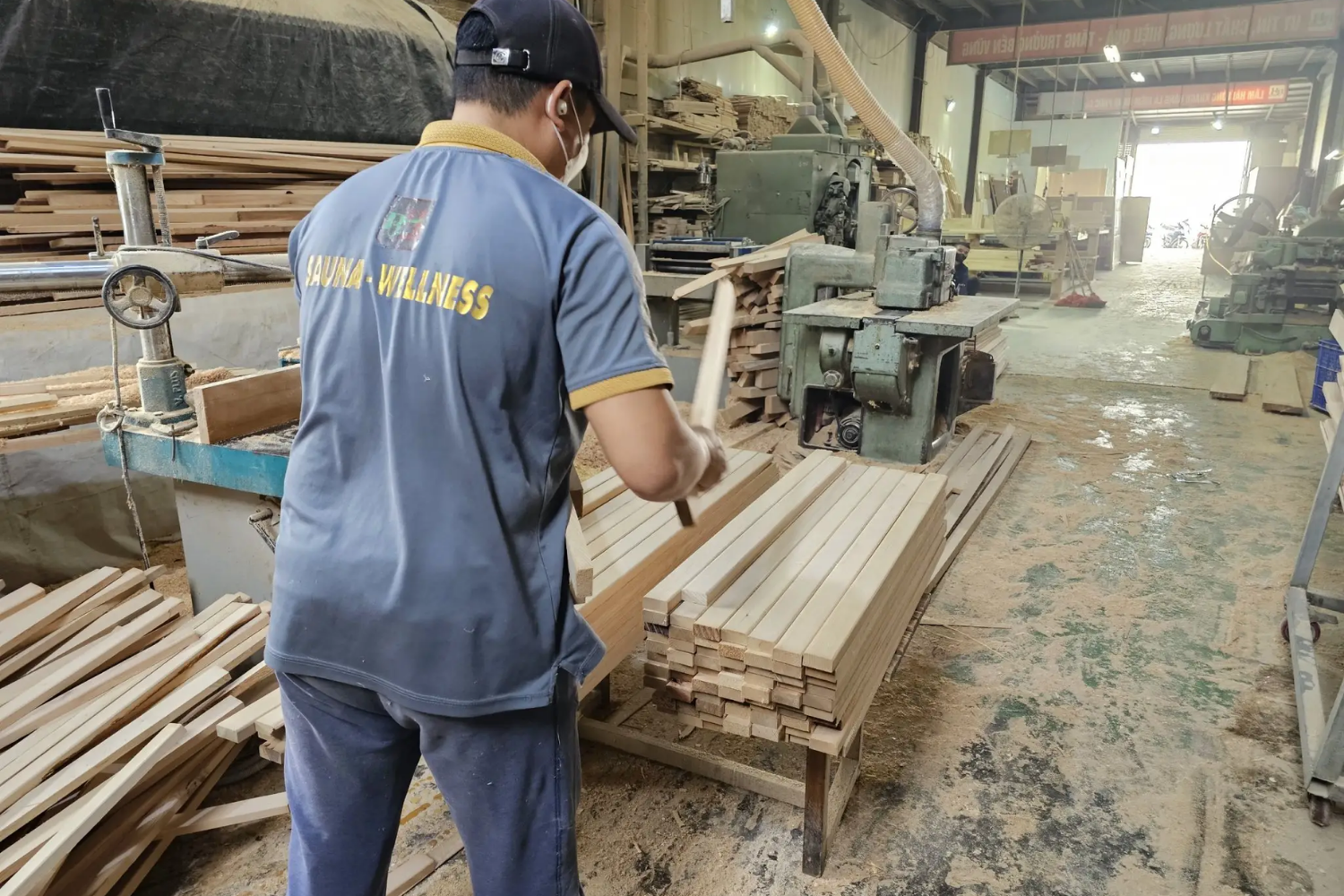Sản xuất tại xưởng là bước quan trọng giúp đảm bảo chất lượng và độ chính xác của phòng xông hơi trước khi lắp đặt tại công trình. Tại đây, các chi tiết được gia công theo kích thước thực tế đã khảo sát, bao gồm cắt gỗ, xử lý vật liệu, lắp dựng module và kiểm tra kỹ thuật.