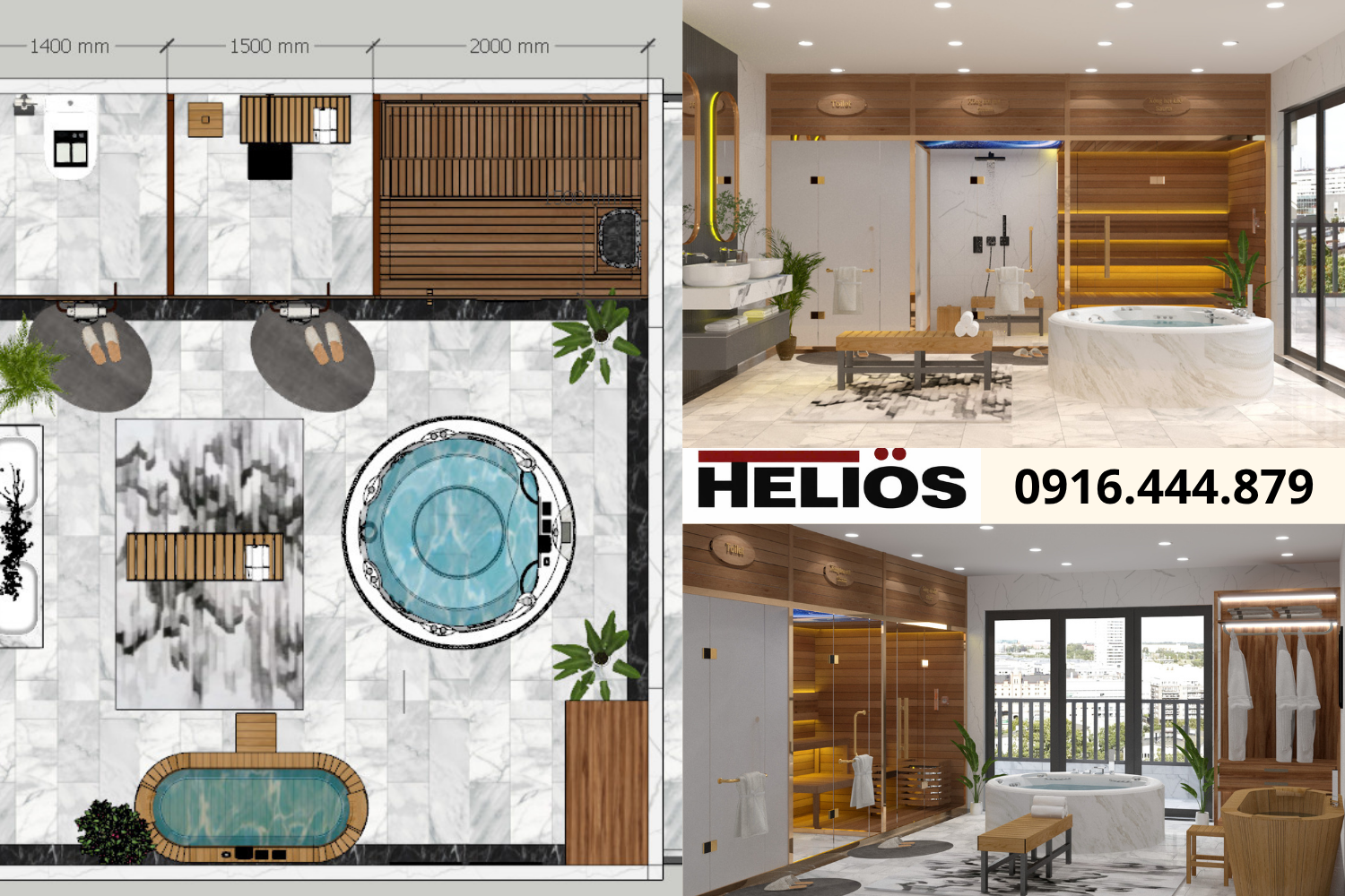 Thi công một phòng xông hơi tiêu chuẩn đều phải trải qua đầy đủ các bước hoàn chỉnh từ khâu khảo sát đến tính toán thiết kế chi tiết, lựa chọn vật liệu và công suất máy phù hợp với từng công trình, từng nhu cầu của khách hàng. Hình ảnh dưới đây sẽ là tổng quan các bước thực hiện của Helios về hoàn thiện một phòng xông hơi hoàn chỉnh